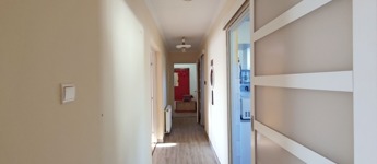 A földszinten egy nagyon tágas, étkezős, hallos 21 nm-es, gépesített konyhába érkezünk, innen a bejárattal szemben nyílnak a szobák, a 24 nm-es nappali és mellette a 20 nm-es hálószoba. A konyha jobb oldalán pedig a 9 nm-es épített zuhanyzós fürdőszobába juthatunk, amelyből az 1,7 nm-es toalett nyílik, ahol a kazán is található. Az emeleten a kis előtérben szemben az 1,6 nm-es toalett nyílik. Az előtérből jobbra a folyosó jobb oldalán középen a kétszárnyú ajtón keresztül a nagyméretű, 30 nm-es nappaliba juthatunk. Mellette szintén jobbra a 20 nm-es hálószobát, a folyosó végén pedig a 10,2 nm-es kisebbik szobát találjuk. A közlekedőben a folyosó elején balra nyílik a 4,2 nm-es fürdőszoba és 9,6 nm-es gépesített, konyhabútoros és étkezős konyha. A konyhából pedig a 6 nm-es fedett teraszra léphetünk ki.