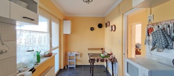 A családi ház az 1950-es évek elején épült betonozott alapzattal, kis pincével, amelyre 1986-ban ráépített a tulajdonosa egy új szintet, cserép héjalással, északnyugati fekvéssel, remek elosztású, szintenként nagyon tágas és világos szobákkal. A ház minden szempontból kellően világos.