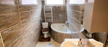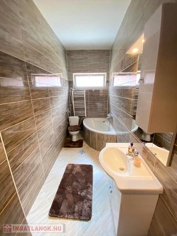 Az emeleti fürdőszobába sarokkád, míg a földszinten zuhanyzó található. A szobák parkettások, a többi helyiség járólappal burkolt, a nyílászárók műanyagok, szúnyoghálóval ellátottak. A fűtést gázcirkó a meleg vizet pedig elektromos vízmelegítő bojler biztosítja! Az elektromos vezetékek korszerűsítése is megtörtént!