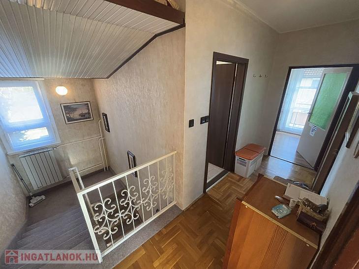 Emelet: 3 szoba, zuhanyzós + kádas fürdőszoba, közlekedő.