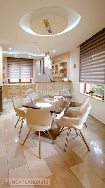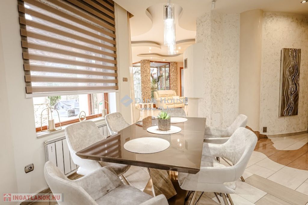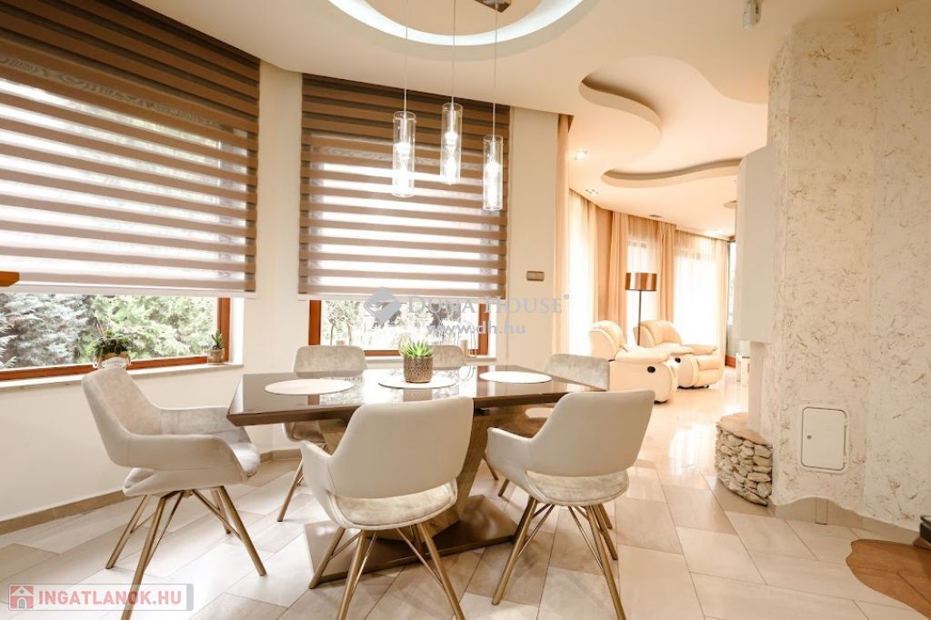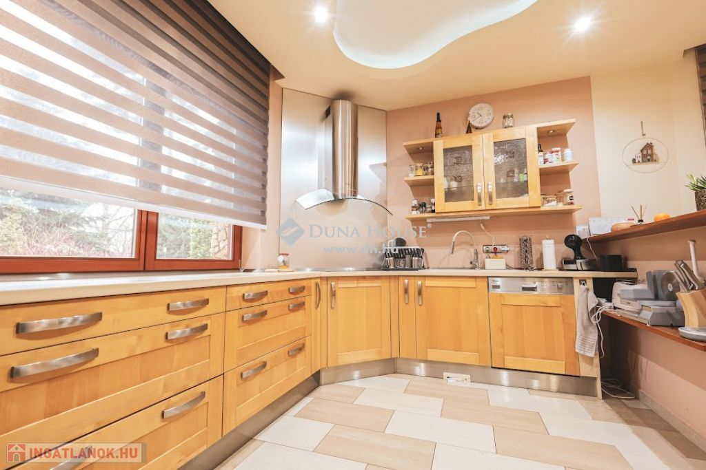 Műszaki paraméterek: Beton alapon 38-as porotherm tégla falazatú, 5 cm szigetelés a ház körül. 3 méter belmagasság, spot lámpák beépítve. Fűtést gázkazán biztosítja tárolóval és inverterrel. Padlófűtés + radiátor. 2 db klíma található a földszinti és emeleti részen 7,5 kw inverteres hűtő+fűtő. Hofstadter nyílászárók, üveg beltéri ajtók a téli kerthez és a közlekedőbe vezető bejáraton. Mile tipusú gépesített konyhabútor az árban. Sötétítő roló és szúnyogháló az ablakokon. Roppant világos, tágas helyiségek jellemzik az ingatlant.