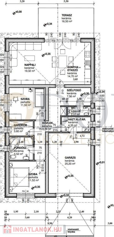 •	Garázs: 25,2 m², közvetlen lakáskapcsolattal