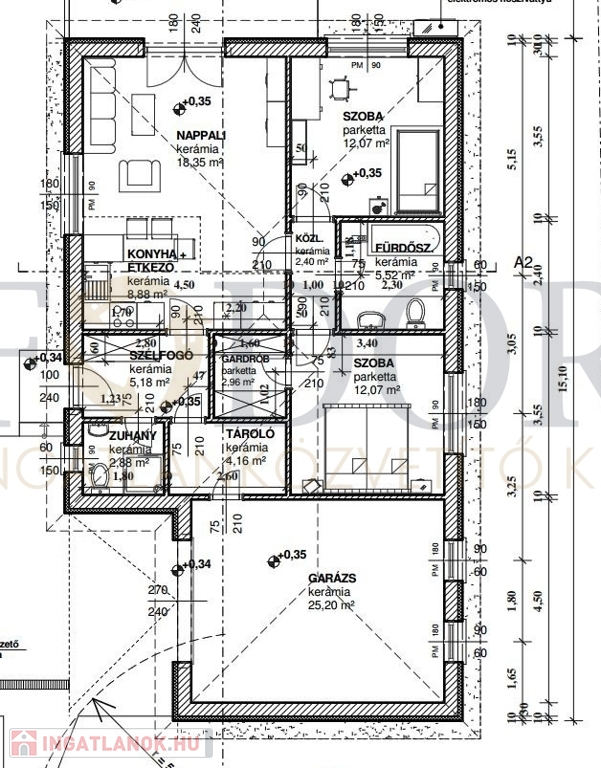 • Amerikai konyhás nappali + 2 hálószoba + gardrób
