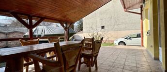 A ház mellett akár 3 autó számára is biztosított a parkolási lehetőség az udvarban. A kertben kialakított rész ideális sütögetéshez, grillezéshez.