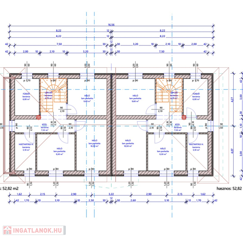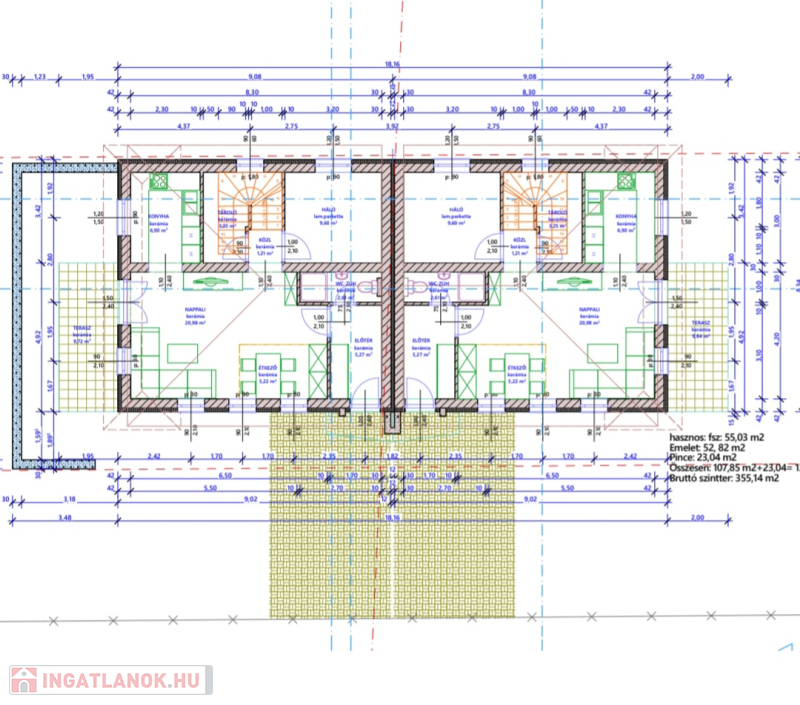 A ház nettó alapterülete 108 nm + 10 nm-es terasz.