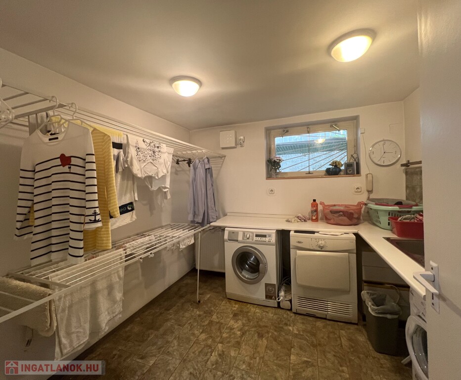 • ablakos nagy mosóhelyiség, szauna, tároló, vizes blokk, gépészeti helyiség,