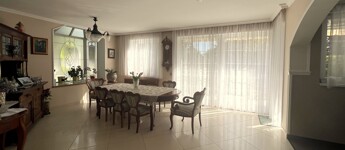 • elegant Living-Dining Area (approx. 32 sqm) – flooded with natural light through large glass surfaces, featuring sliding glass doors with access to the garden terrace.