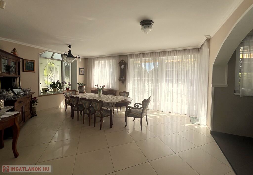 • elegáns üvegfelületekkel természetes fénnyel megvilágított elegáns NAPPALI - ÉTKEZŐTÉR (kb. 32 nm) padlófűtéssel, elhúzható üvegfelülettel kerti terasz kijárattal,