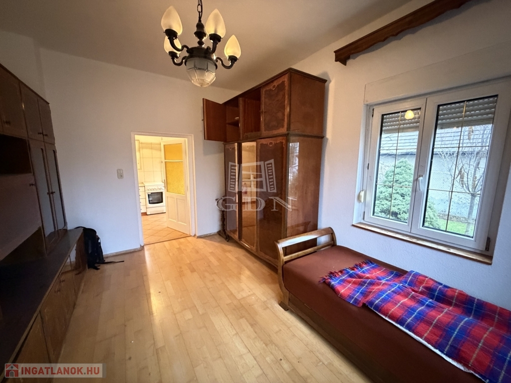 A nappali mellett található egy kényelmes méretű hálószoba, ez a szintén nagy méretű konyha étkezőből közelíthető meg jelenleg.