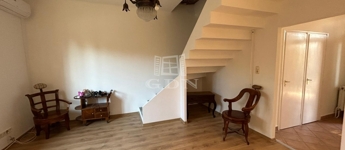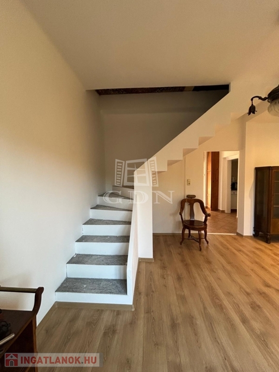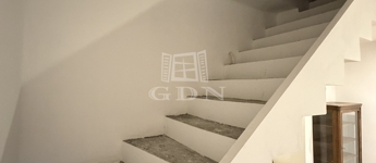 A földszinten egy tágas előszoba-közlekedőbe léphetünk be, innen nyílik egy világos nappali amelyben egy frissen kialakított modern lépcső vezet fel a tetőtérbe.