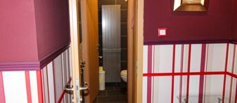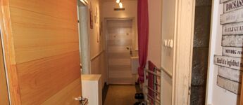 Előszoba, étkező, konyha és kamra, zuhany és WC, valamint a nappali.