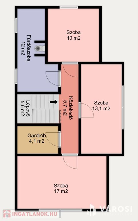3 hálószoba, Gardrób és Fürdőszoba, WC-vel
