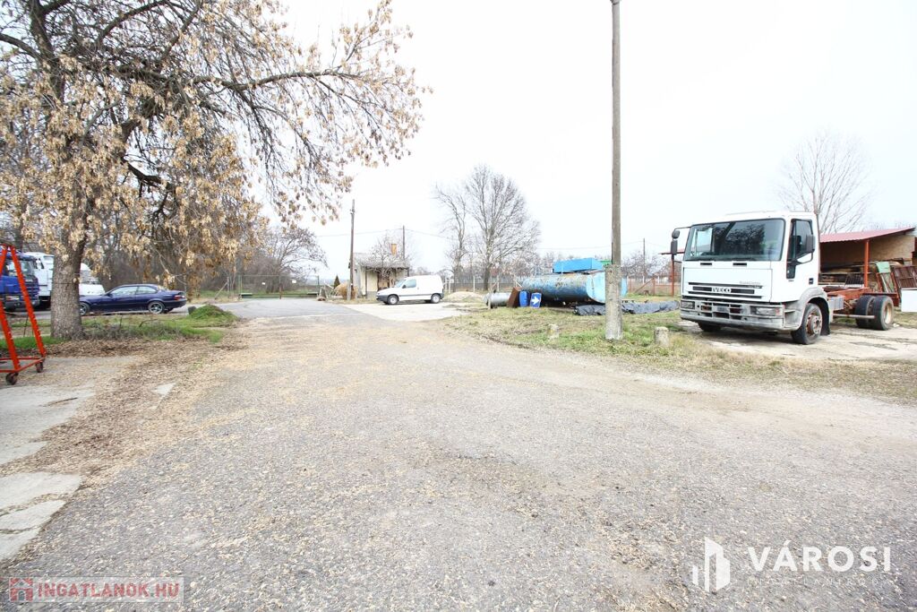 Az ingatlan körbe kerített 3439 m2 terület, telephelynek alkalmas, az udvaron kapott helyet autómosó is, és külön porta épület. Az ingatlanban riasztó felel a biztonságért.