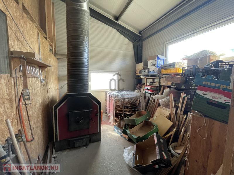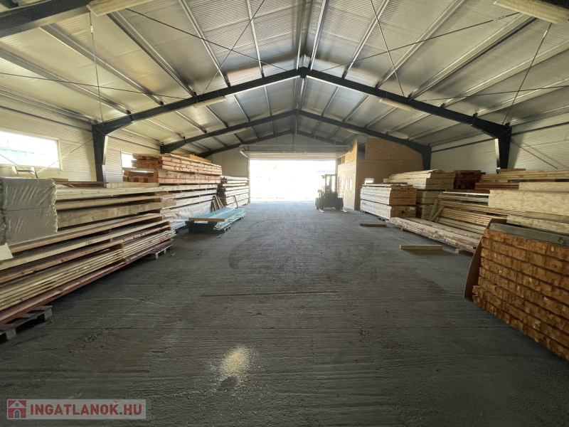 Szerkezete fém és szendvics panel. Az épületben víz, villany (3x50A) található. Az épülethez tartozik egy 150 m2-es fedett rész is. A csarnokban két rész van, a nagyobbik 471 m2-es részben került kialakításra a vizesblokk, iroda, étkező, kazánház. Az emeleti részben egy tárgyaló alakítható ki. A csarnok kisebbik részében, amely 323m2, egy iroda található. Az épület 3 ipari kapuval és egy személyi bejáróval kialakított.
