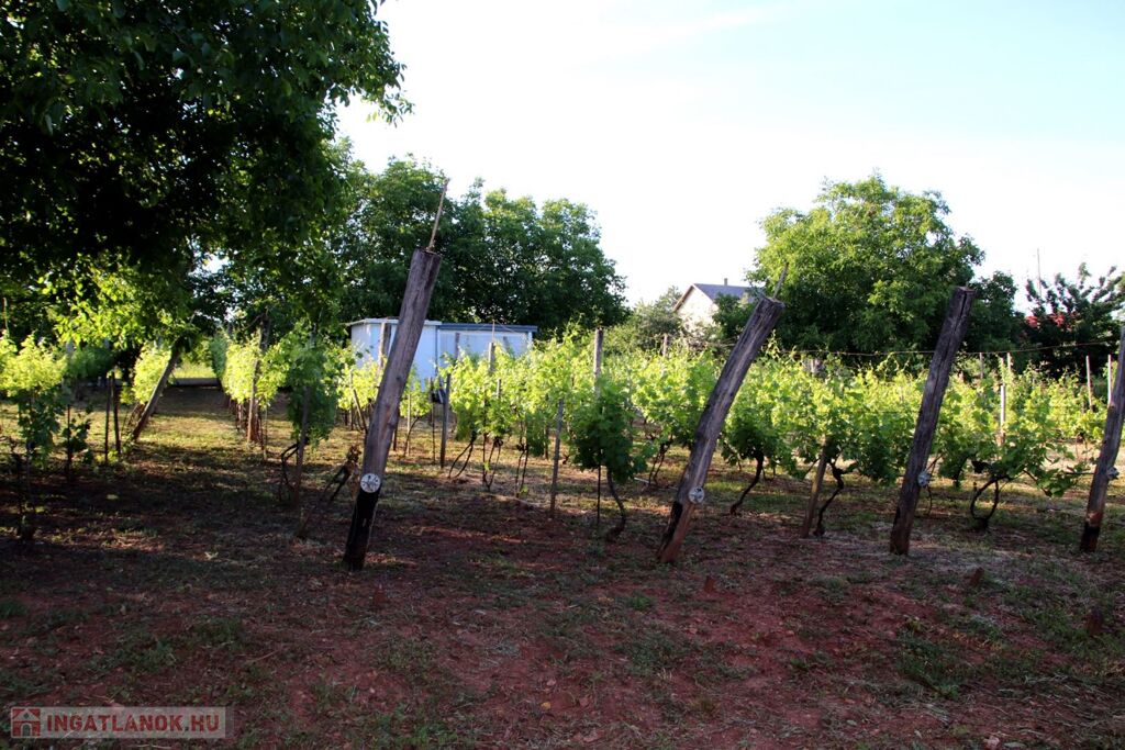 A telek gondozott, szőlővel, fűszernövényekkel és gyümölcsfákkal beültetett.