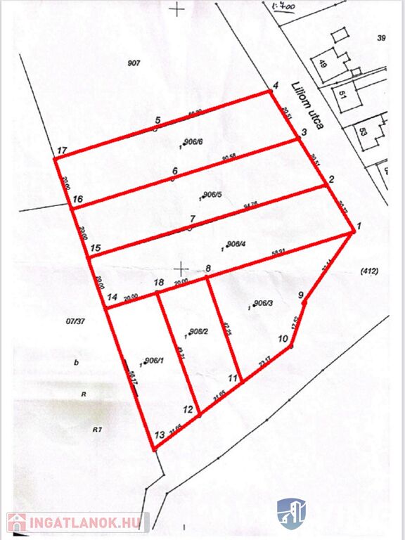A 906/3, 906/4, 906/5, 906/6 helyrajzi számú telkek cca. 2000 nm nagyságúak, a 906/1 és 906/2 helyrajzi számú telkek cca. 1000 nm-esek.