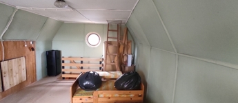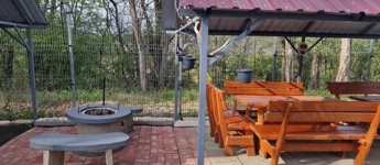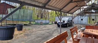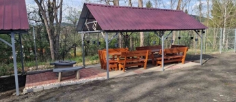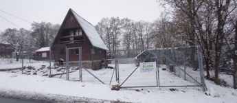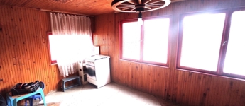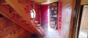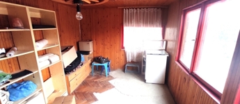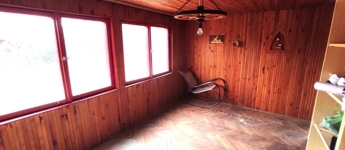 Az ingatlanon egy kő alapzatú, három plusz egy szintes, felújítandó erkélyes faház -többek közt-fürdőszobával és garázzsal, további három darab mobil garázs+ két fedett pihenőhely található.