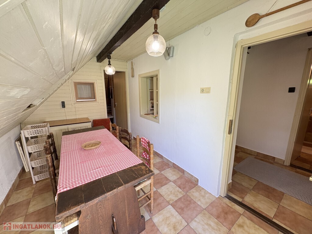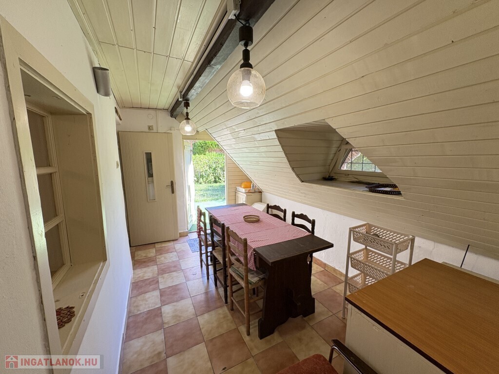 Balatonmáriafürdőn, a vízparttól csupán 50 m-re található - zsákutcában lévő, ezért kifejezetten csendes környezetben - 70 m2-es nyaraló eladó. Az épületben alul előszoba-étkező, 2 félszoba, konyha, fürdőszoba-wc, nappali helyiségek találhatóak, míg a tetőtérben 2 félszoba és egy kis előtér került kialakítására. Az épület igény esetén akár még télen is használható, a fűtést a nappaliban gázkonvektor biztosítja. Az ingatlan kiadása is kiváló jövedelem kiegészítést biztosít, hiszen nyáron nyaralóként illetve ősztől tavaszig az egyre népszerűbb horgászturizmus révén is hasznosítható. Az épület stílusa magával ragadó, a régi balatoni életérzést nyújtja. Telek: 438 m2