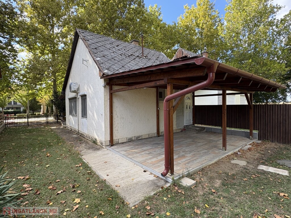 Dombóvár - Gunarasban - a gyógyfürdőtől csupán 200 m-re található - akár azonnal is birtokba vehető - 35 m2-es téliesített nyaraló eladó. Az épületben előszoba-nappali, 2 félszoba, kis konyha beépített konyhabútorral (Candy mosogatógéppel, Bosch főzőlappal és Cata elszívóval), kamra-kijárattal a hátsó fedett teraszra. Az épület akár télen is használható, a fűtése kandallóval megoldott, valamint a nappaliban légkondicionáló is felszerelésre került. A parkolás gépkocsival az udvarban lehetséges, ahol kerti csap, és szerszámok tárolására alkalmas kisház is áll. Telek: 305 m2.