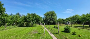 A telek teljesen körbekerített, szépen gondozott, amelyen jól termő gyümölcsfák vannak, valamint örökzöldek. Veteményezési és konyhakert kialakítására is van lehetőség. Parkolás az utcán és telken belül lehetséges.