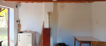 Az épületben egy 14 nm-es helyiség van, nagyon hangulatos, látszógerendás födémmel. előtte egy betonozott, 9,50 nm-es terasz, illetve egy esetleges bővítéshez már egy 40 nm-es alapterülethez a sávalap rendelkezésre áll.