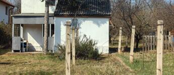 Gyümölcsfák (cseresznye, körte) és pár tőke szőlő is van az udvaron.
