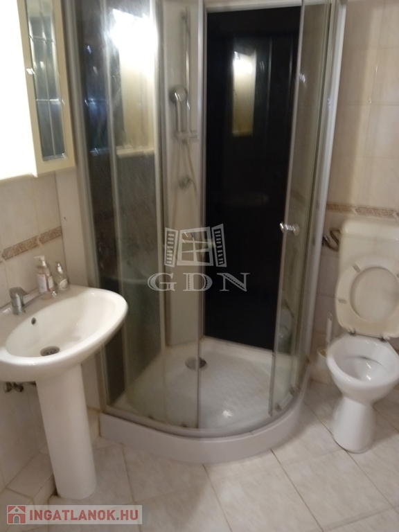 Helytakarékos megoldással a fürdőben zuhanykabin került beépítésre, növelve így a tér és komfort érzetet.