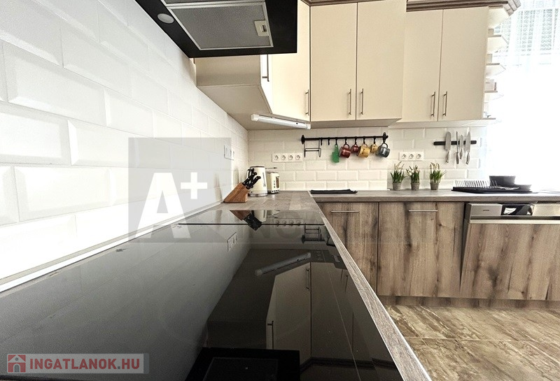 A konyha teljesen felszerelt, gépesített a háztartási helyiségben mosó és szárítógép is van.