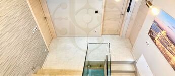 A belső terek visszafogott eleganciát és kifinomult minimalizmust sugároznak. A nappali tágas, természetes fényben úszik, a felső szint pedig egy panorámás teraszkomplexummal koronázza meg az ingatlant – tökéletes helyszín pihenésre vagy reprezentatív eseményekre.