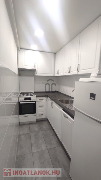 A lakás teljesen bútorozatlan, azonban komplett gépesített beépített konyhával rendelkezik (sűtő, gázlap, páraelszívó, mosogatógép, hűtő-fagyasztó)