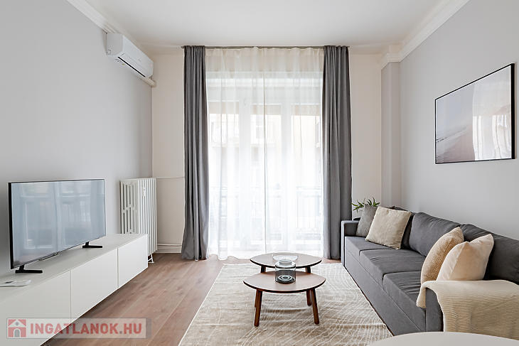A lakás erkéllyel és légkondicionálóval felszerelt, így nyáron is kellemes klímát biztosít.