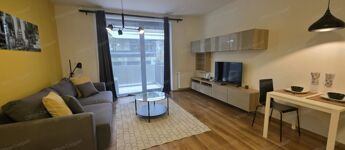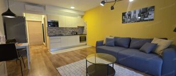 A Corvin sétányon kiadó egy első emeleti, 32 négyzetméteres, teljesen berendezett és gépesített, erkélyes, igényes kis lakás.
