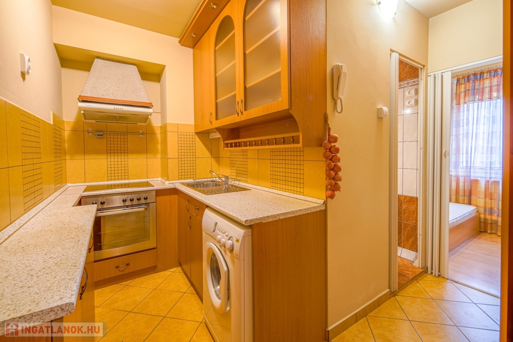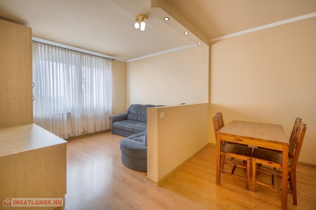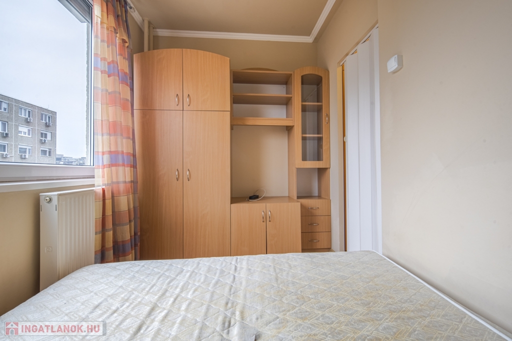 A szoba és a nappali panorámás, északnyugati fekvésű, redőnyös. Azonnal költözhető: az alapvető, képeken látható bútorok, mosógép, hűtő rendelkezésre áll.