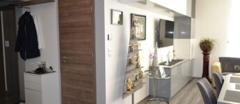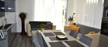 Die Wohnung wurde mit modernen, jungen Designelementen und hochwertigen Materialien gebaut. Die amerikanische Küche bietet eine inspirierende Umgebung zum Kochen, während die geräumigen Wohnzimmer ideal für Familien- und Freundestreffen sind. Neue Fenster und Türen sowie die Außenwärmedämmung garantieren niedrige Unterhaltskosten, und die Fußbodenheizung sorgt auch in den kalten Monaten für angenehme Wärme.