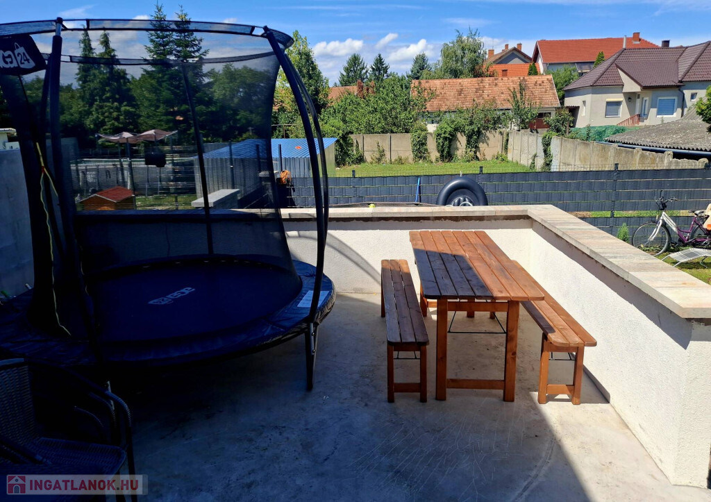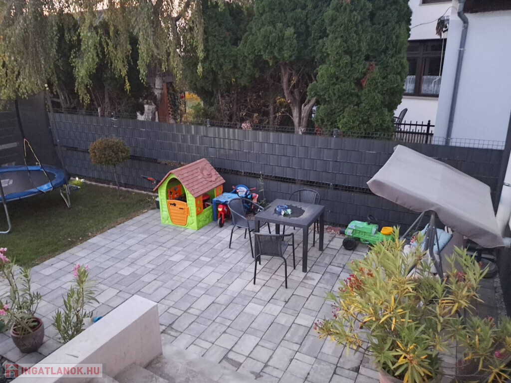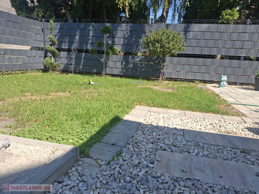 - 55 m2 elkerített hátsó kert nagyobb részt térkövel
