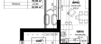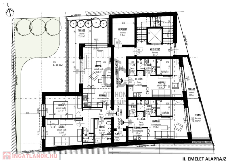 II. emelet 3. lakás 71 nm + 23 nm terasz: