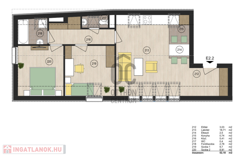 Tetőtér : 2 db lakás ( egyik lakás : 57,2 m2 , a másik lakás: 52,18 m2 )