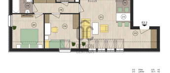 Emelet : 2 db lakás erkéllyel ( egyik lakás :74,42 m2 + 9,77 m2 erkély , a másik lakás : 62,87 m2 + 4,1 m2 erkély )