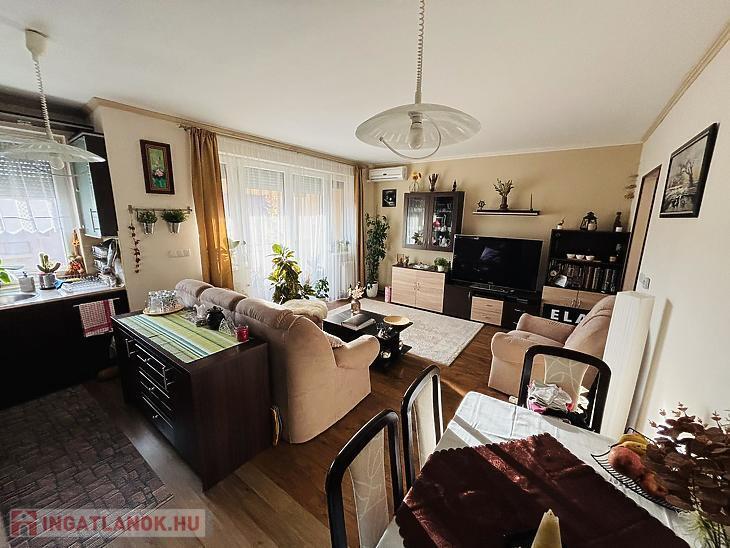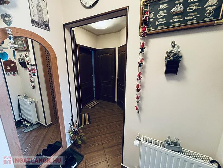 Elosztását tekintve előszobával, amerikai konyhás nappalival, 2 szobával, közlekedővel, fürdőszobával, külön WC-vel rendelkezik.