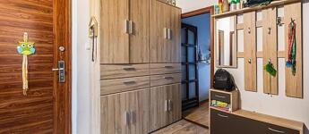 Elosztását tekintve egy nappaliból, hálószobából, konyhából, fürdőszobából és külön WC-ből áll. 30cm tégla építésű falak, a szigetelő anyag a téglában található.