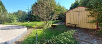 A lakáshoz tartozik egy könnyűszerkezetes garázs, egy gépkocsibeálló, valamint egy fúrt kút is.