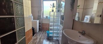 A hálószobák laminált parkettásak, a többi helyiség járólappal burkolt, a nyílászárók pedig műanyag termo üvegesek.