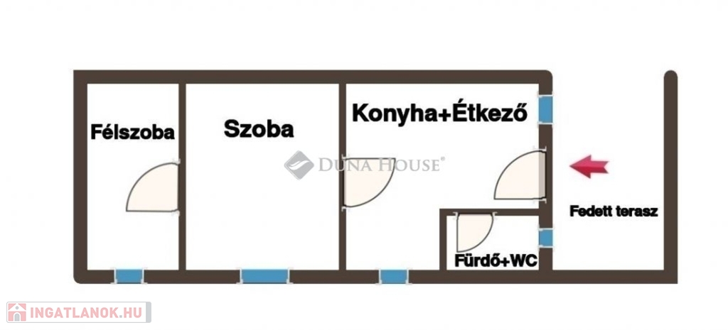 Szobák: 1 + fél szoba (nappali és háló)