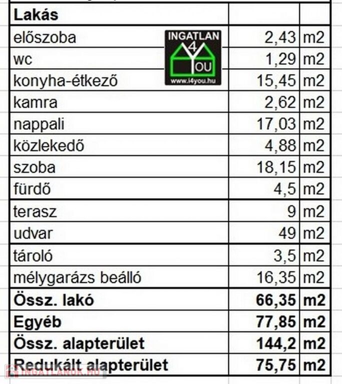 A lakás 66 m² lakóterülettel rendelkezik, melyhez 9 m²-es terasz, valamint egy hangulatos, 49 m²-es kizárólagos használatú kertkapcsolat tartozik — tökéletes pihenéshez vagy családi időtöltéshez.