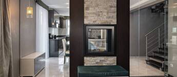 - Bioetanolos látványkandalló és üvegfal a nappali–étkező között
