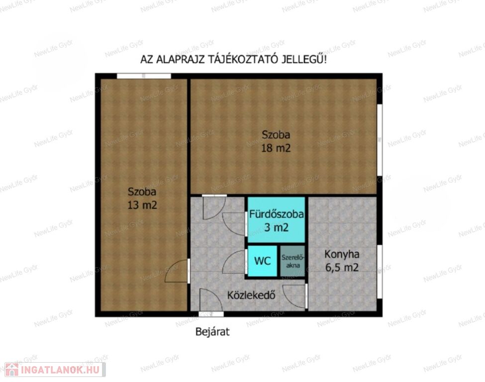 - Mindkét szoba, laminált parkettával burkolt, a többi helyiség járólappal.