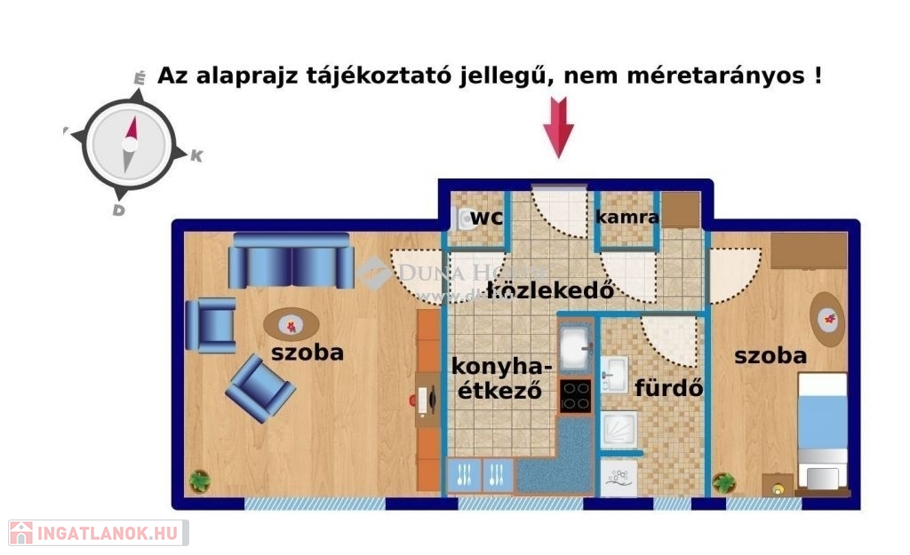 Teljesen berendezett, 50 m2-es, két szobás, fiatalos lakás eladó Kőszegen !