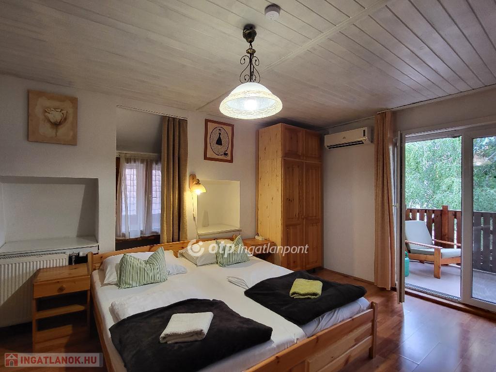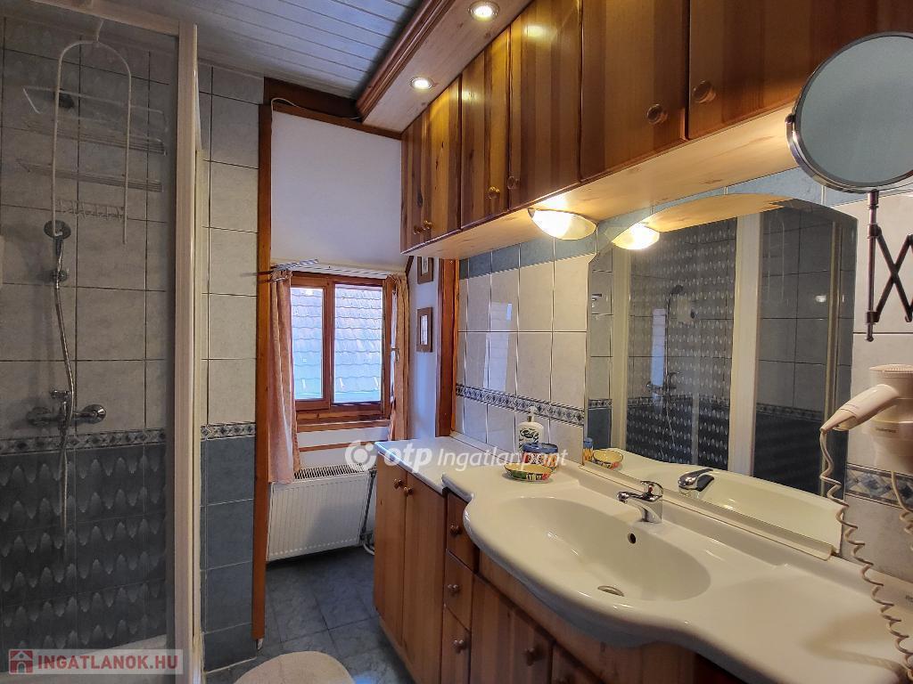 Hévíz, Egregy kertváros, 147 m2 lakás eladó. A három lakásos ingatlan egy 847 m2-es telken, csendes, nyugodt környezetben helyezkedik el, gyönyörű kilátással az Egregyi Nemzeti erdőparkra. A három szintes lakóteret hangulatos terasz és erkély egészíti ki, biztosítva a kényelem, a pihenés és feltöltődés számos lehetőségét a mindennapi tevékenységek mellett. Az ingatlan értékét növeli egy zárt garázshely és egy további, fedetlen parkolóhely, valamint egy garázsból nyíló pince. Minden szobához tartozik fürdőszoba, így ideális lehetőség akár többgenerációs családoknak is. A fűtést és a melegvizet cirko gázkazán biztosítja radiátor hőleadókkal, amit a földszinten egy egyedi kandalló egészít ki. További fűtési lehetőséget biztosítanak minden szobában az inverteres klíma berendezések, valamint infra panelek is rendelkezésre állnak. A 3 éve nagyrészt felújított ingatlan értékét tovább növeli egy különleges lehetőség, a hátsó kertben megépített wellness részleg finn szaunával, infra szaunával, jacuzzival, dézsa medencével, sókabinnal, masszázs helyiséggel és egy kerti sütő-főző hellyel kiegészítve, ami igény szerint megvásárolható a lakás mellé. Az ingatlan egyedülálló és kiváló lehetőség nagycsaládoknak, több generációs családoknak állandó lakhatásra, de befektetésként kiadásra is kiváló lehetőség Hévíz nemzetközileg is ismert tófürdőjének köszönhetően, ami csak 2 km távolságra van a háztól, és akár egy fél órás sétával is elérhető. Az ingatlan mindegyik lakása eladó, illetve egyben is megvásárolható. Otthon Start Hitelprogram. Bővebb információért keressen telefonon!