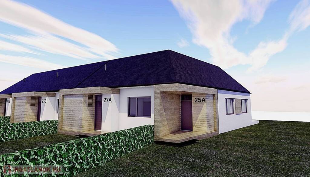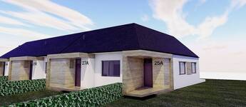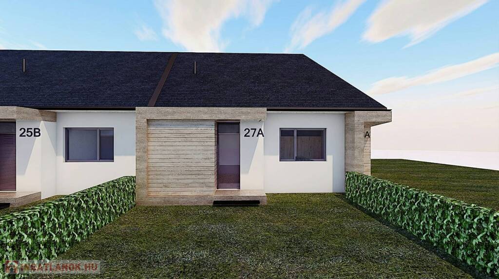 A termálfürdő közelében, új lakóparkban, 2026-ban épülő, zártsorú beépítéses, 2 lakásos, külön bejáratú ház egy 424 m2-es telken fekszik.