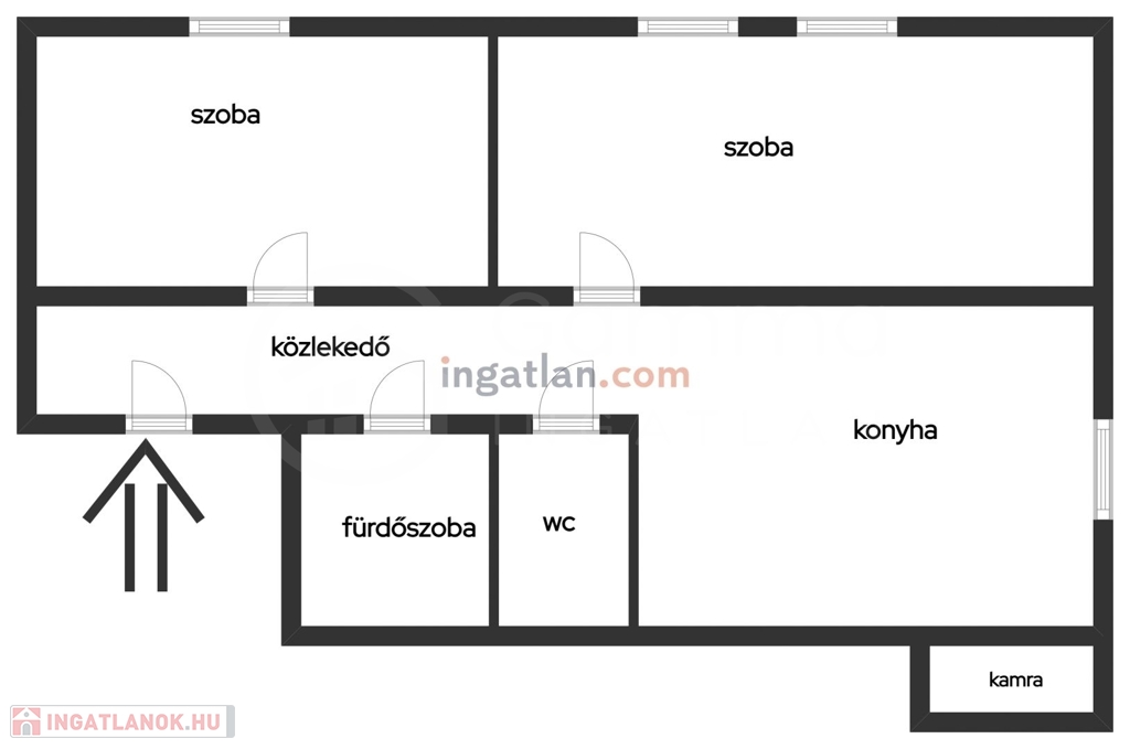 - Helyiségek: 2 különnyíló szoba, konyha, kamra, spájz, fürdőszoba, külön WC.